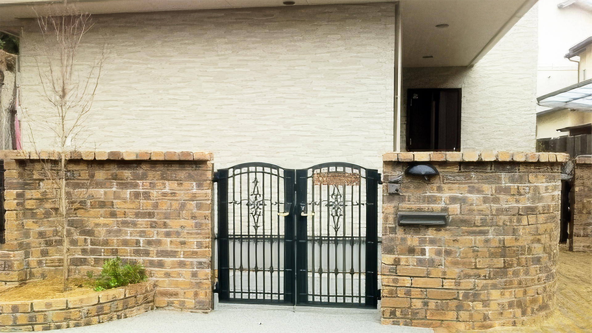 アーチ状の門やアイアンゲート、カーブを描くアプローチなど、