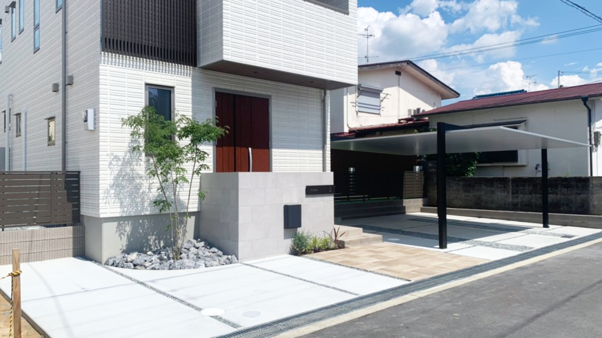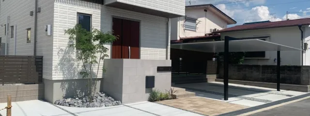 都会的でスタイリッシュな佇まいと、細部にまで宿る機能美が調和する、洗練された外構空間を実現します。